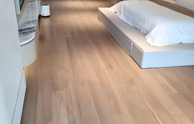 Discover a unique flooring choice that fits a relaxed, lived-in style for modern interiors. Our white lime stain walnut is a contemporary iteration of traditional dark walnut flooring, offering a classic walnut grain softened by foggy white overtones.