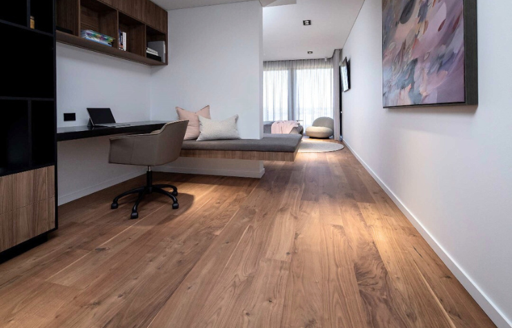 Prized for its deep, sophisticated tones and distinctive appearance, this North American heritage hardwood is a sight to behold. We offer American Walnut as wide planks to showcase its full splendour. It is only marginally softer than teak, which makes it ideal for indoor flooring. With its natural resistance to decay, it will last beautifully with proper care.